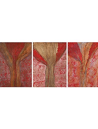 My way of narrating is the collage, the conceptual and material stratification, of placement and interweaving of realities and notions in past and present. Fabrics from different ages, cultures and civilizations, of different textures and structures, are the medium of my choice. I create volumes, on which, as in canvas, I paint my story which blends in the history of the medium used.
